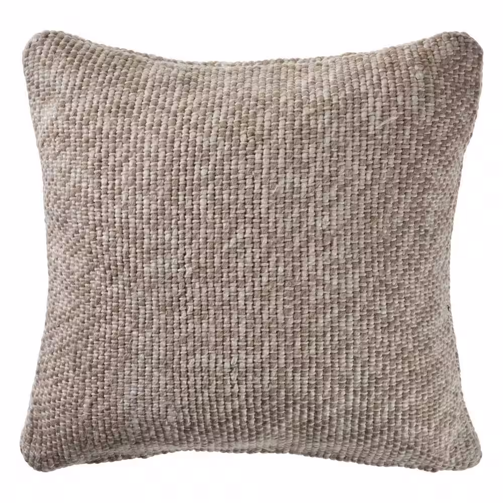 LR Home Care Oatmeal/Ivory Solid Textured Woven Cozy Poly-Fill 20 in. x 20 in. Throw Pillow