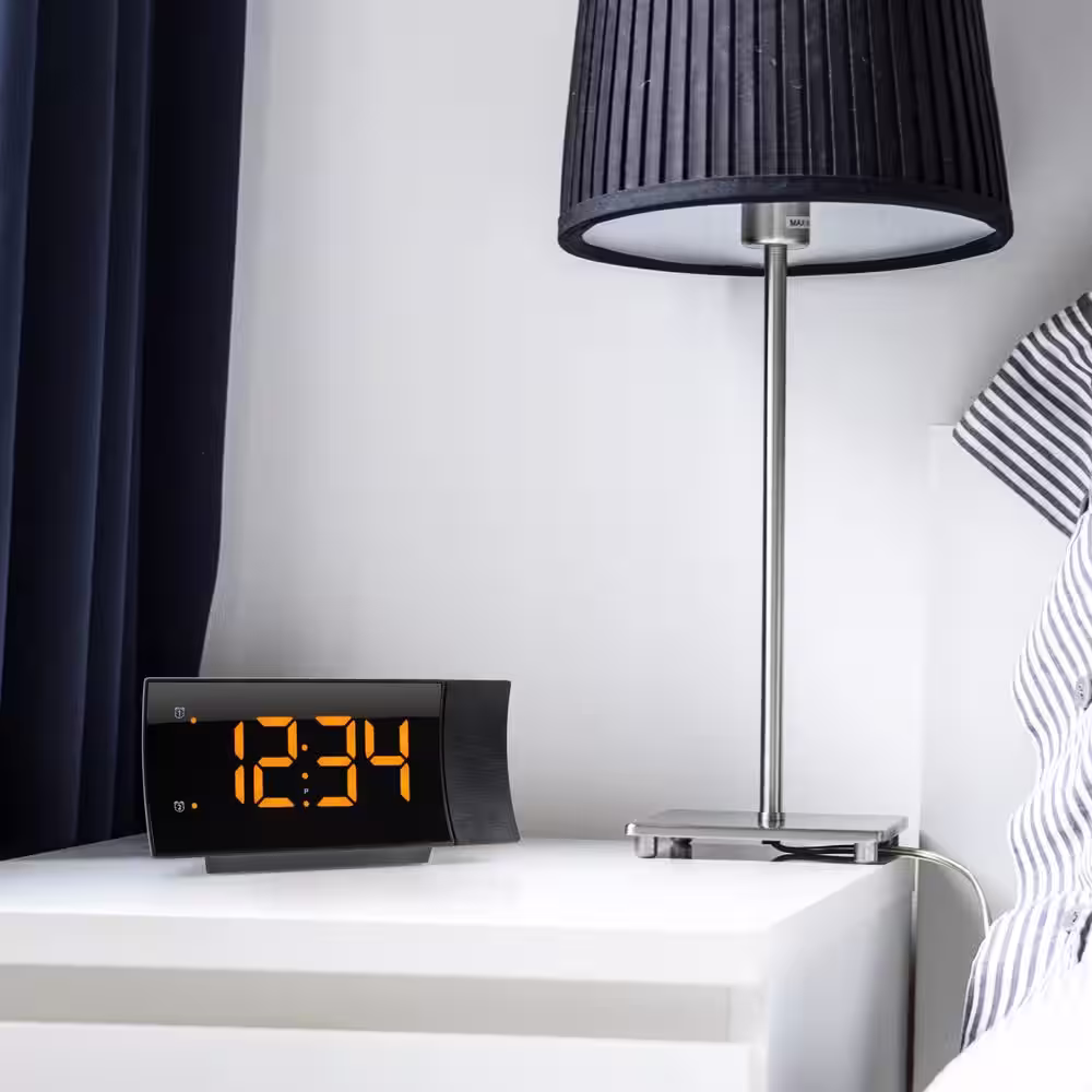 La Crosse Technology Curved Black LED Projection Alarm Clock with Radio