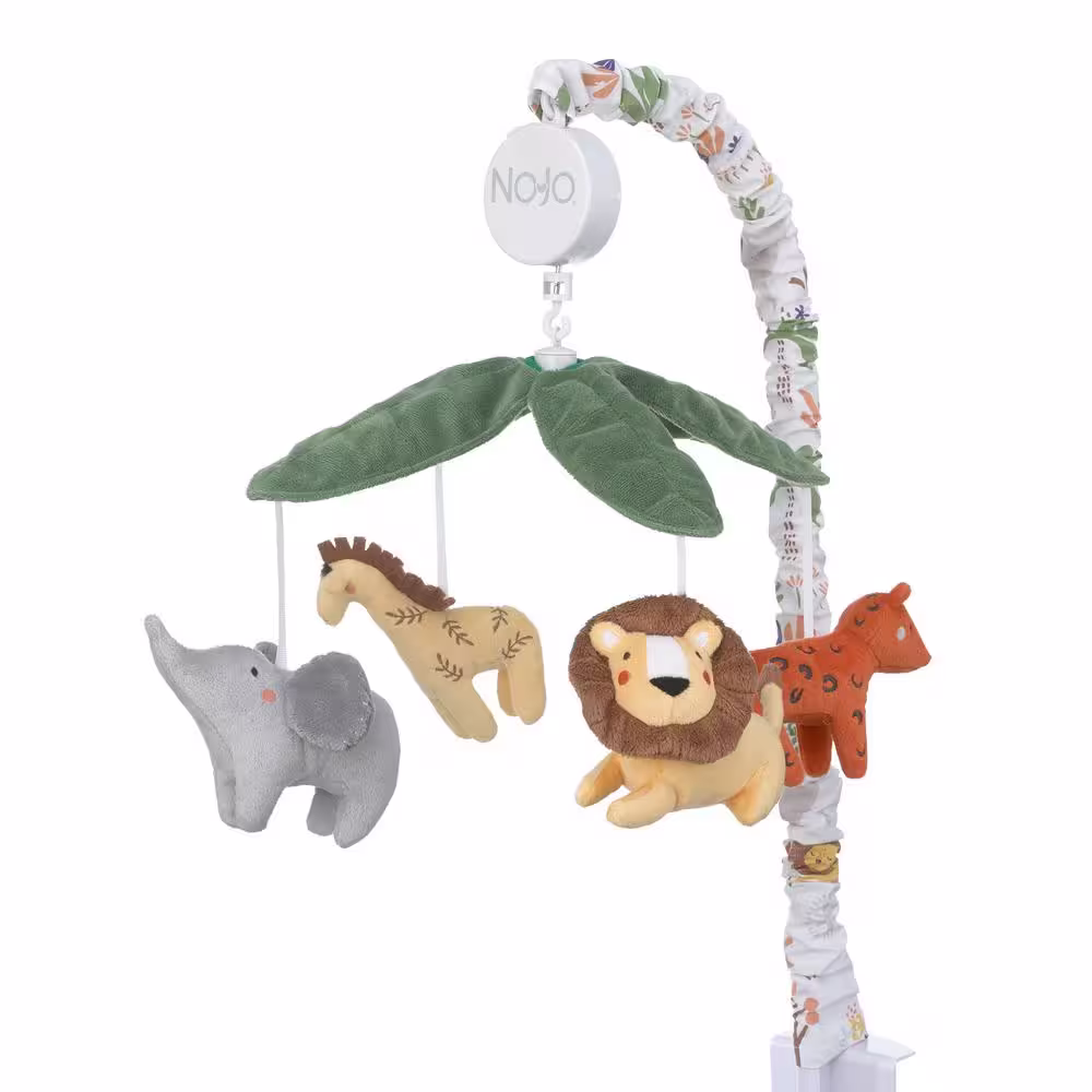NoJo Jungle Trails Green, Gold and Grey Musical Mobile with Plush Animals