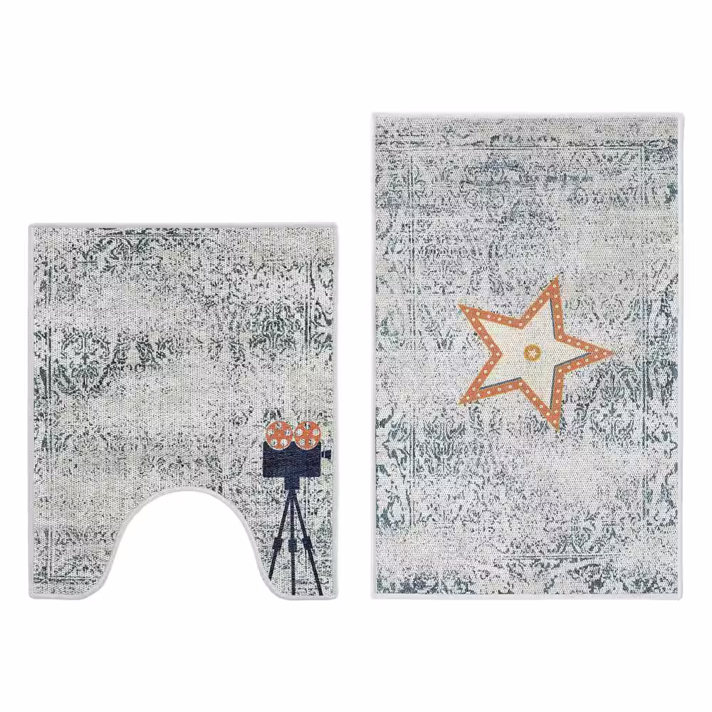SUSSEXHOME Toilet Mat Set Blue, 2-Piece Cotton Bathroom Contour Rugs Set