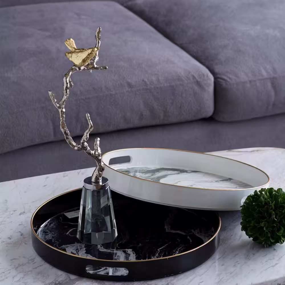 A & B Home Quinn Round Black, White, Gold Trays (Set of 2)