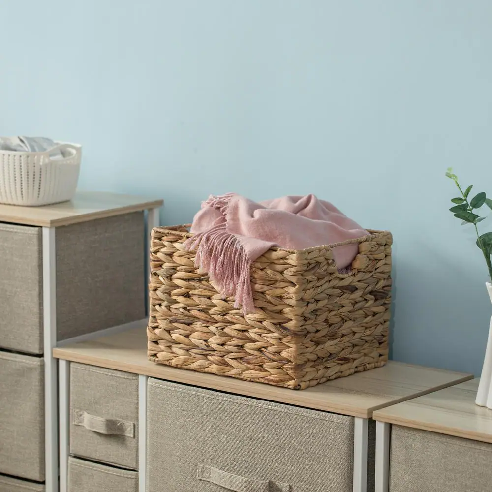 Vintiquewise Natural Decorative Woven Water Hyacinth Storage Basket for The Playroom, Bedroom, and Living Room