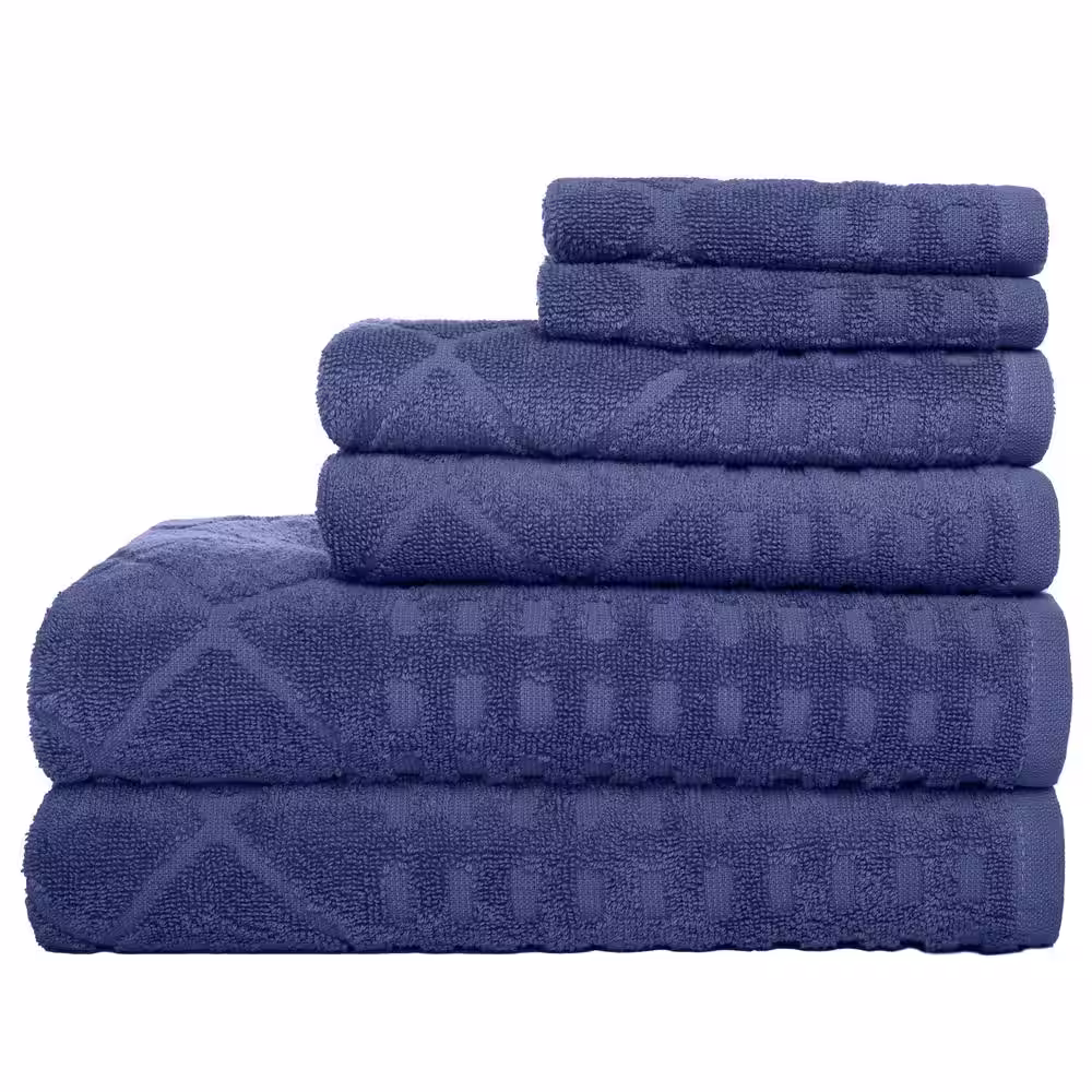 None Heatherly 6-Piece Navy Peony Textured Cotton Bath Towel Set