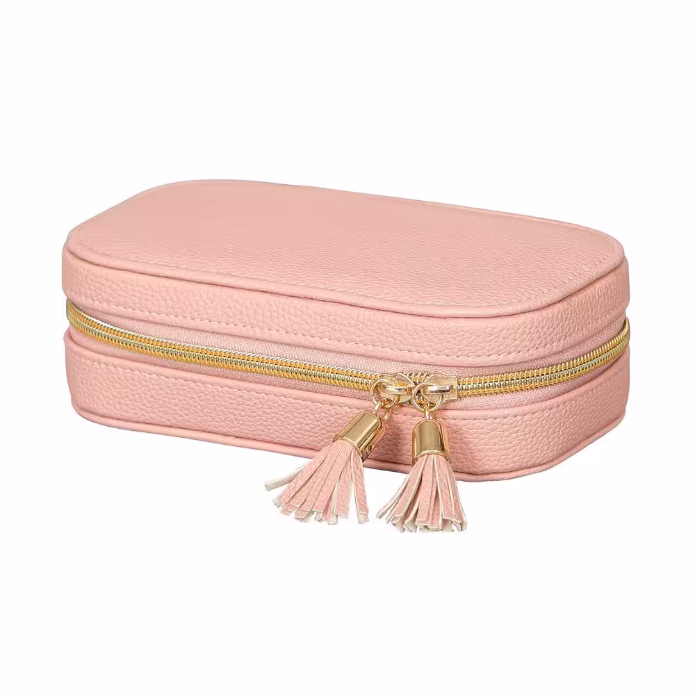 Mele & Co Lucy Travel Jewelry Box in Textured Pink Faux Leather