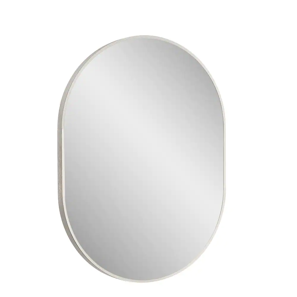 Design Element Vera 24 in. x 32 in. Modern Oval Framed Brushed Steel Wall Mount Vanity Mirror