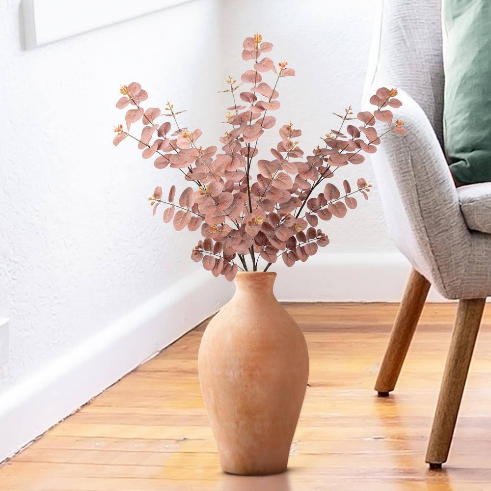 None 36 in. Brown Artificial Eucalyptus Leaf Stem Plant Greenery Foliage Spray Branch (Set of 3)