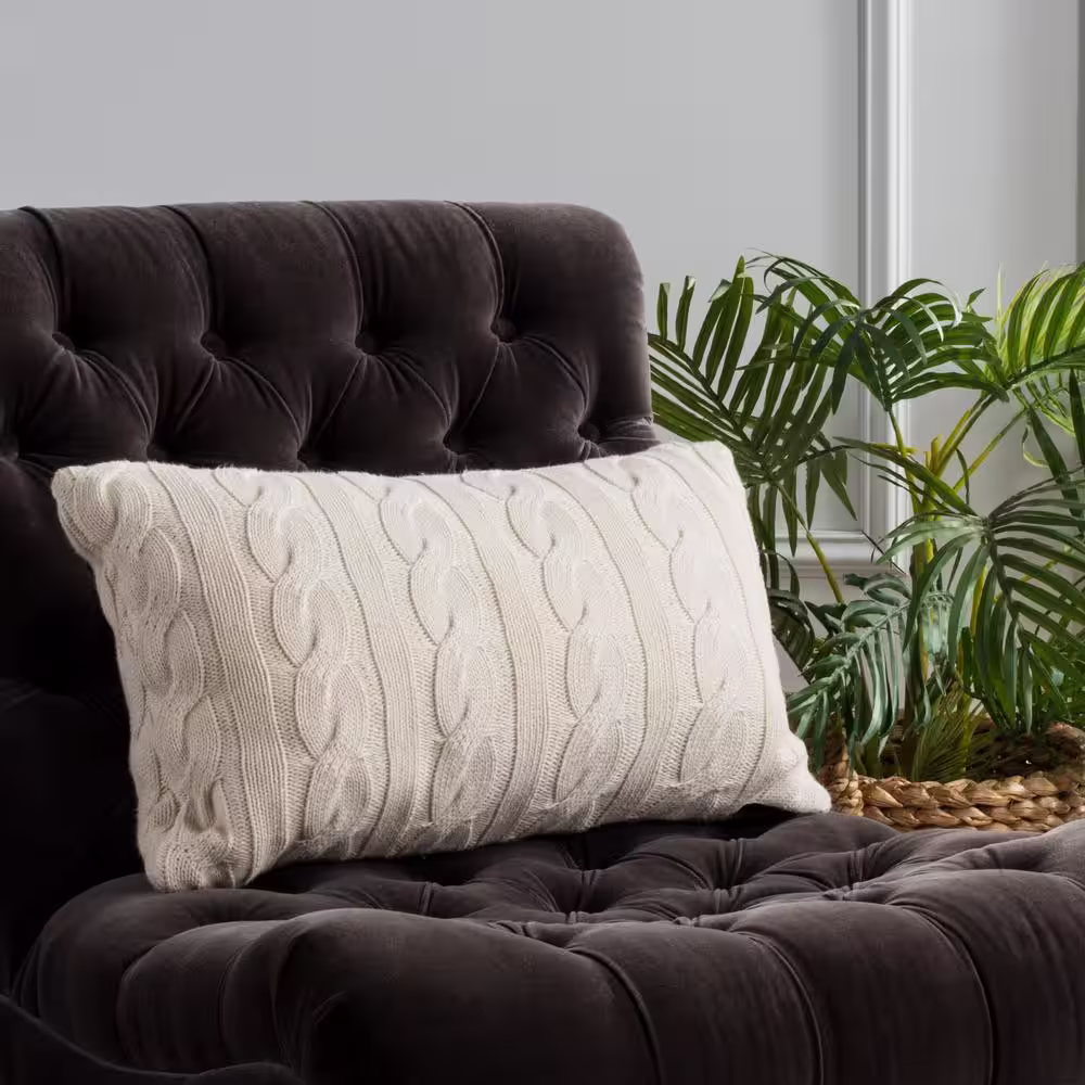SAFAVIEH Sweater Knit Natural 20 in. x 12 in. Throw Pillow