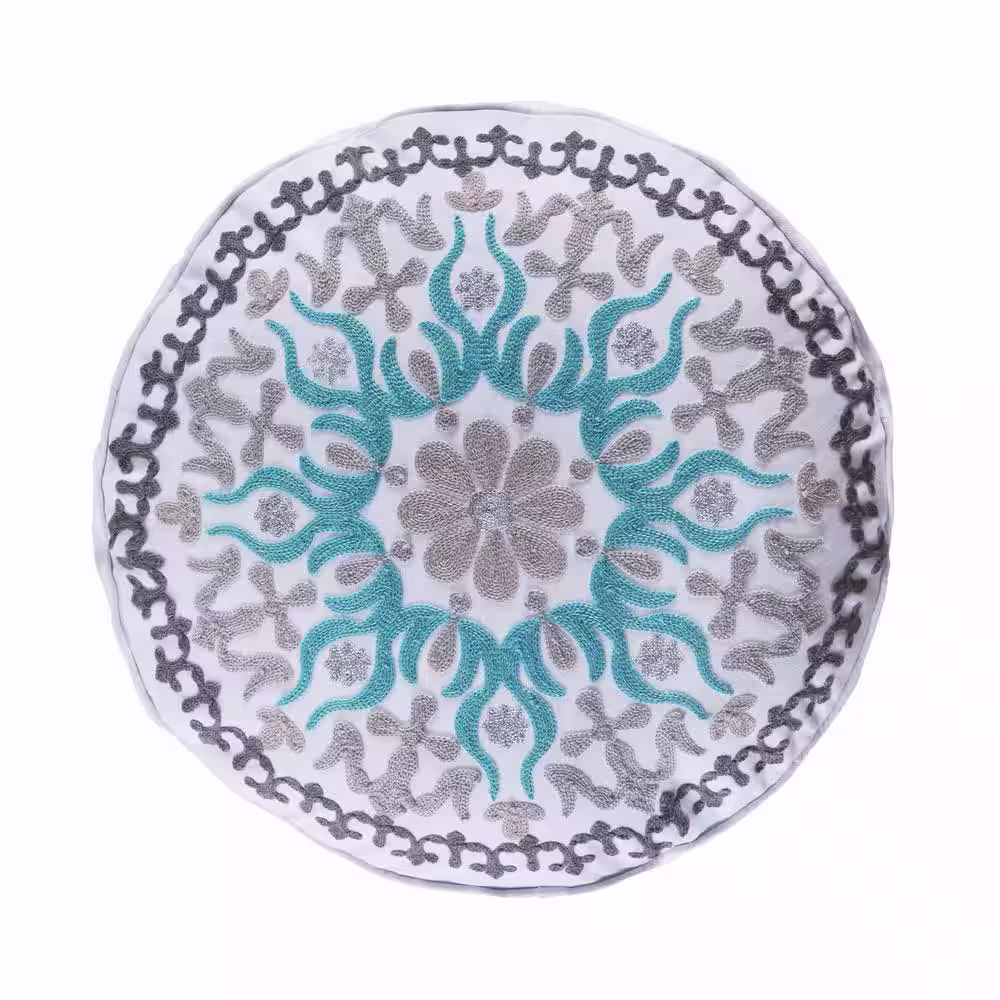 None Bondi Stripe Grey, Teal, White Medallion Embroidered 18 in. x 18 in. Throw Pillow