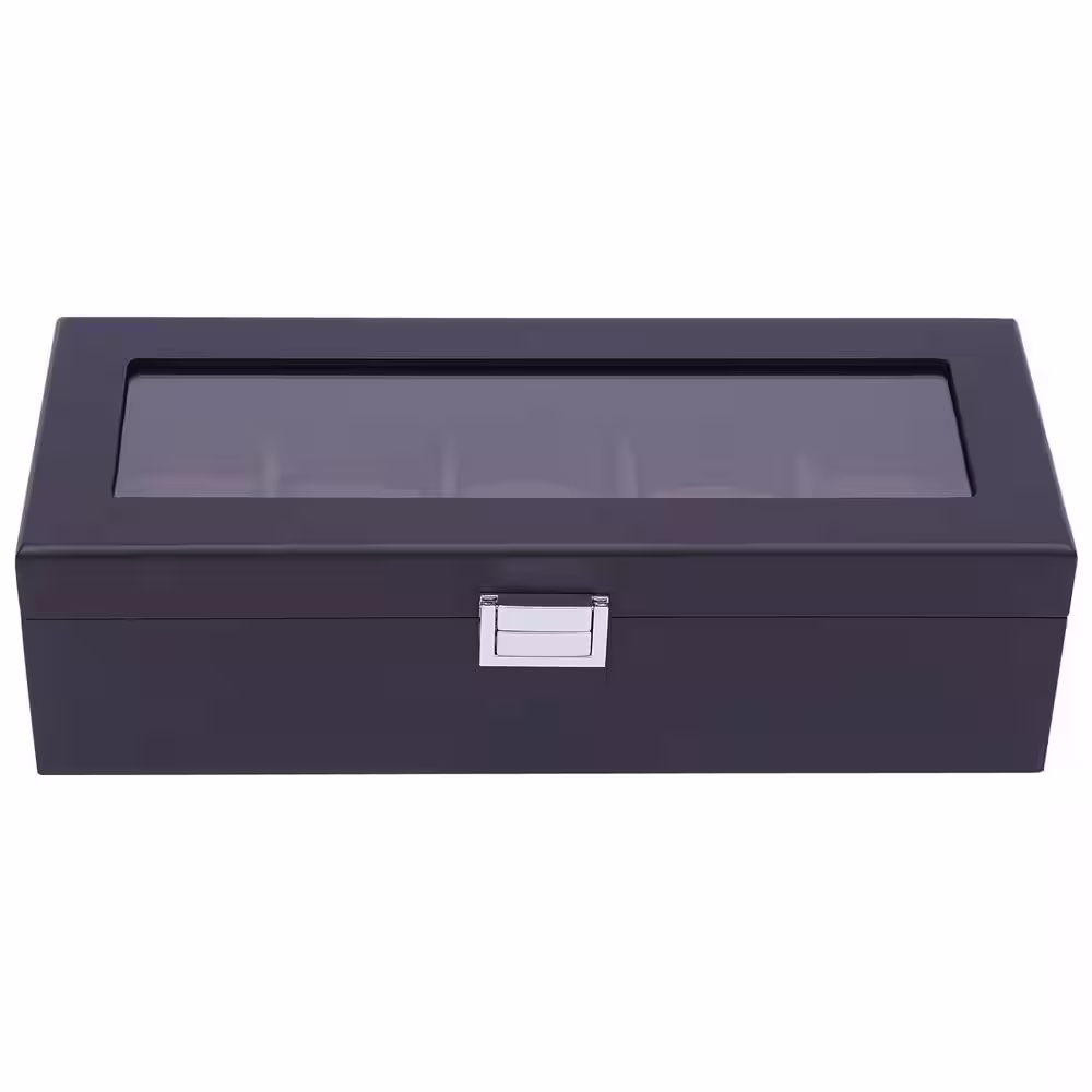 None Solid Espresso 5-Slots Wood Rectangular Watch Box Organizer with Glass Display Top