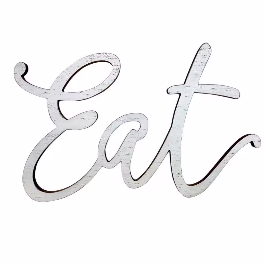 None Eat Whitewashed Cutout Wood Wall Decorative Sign
