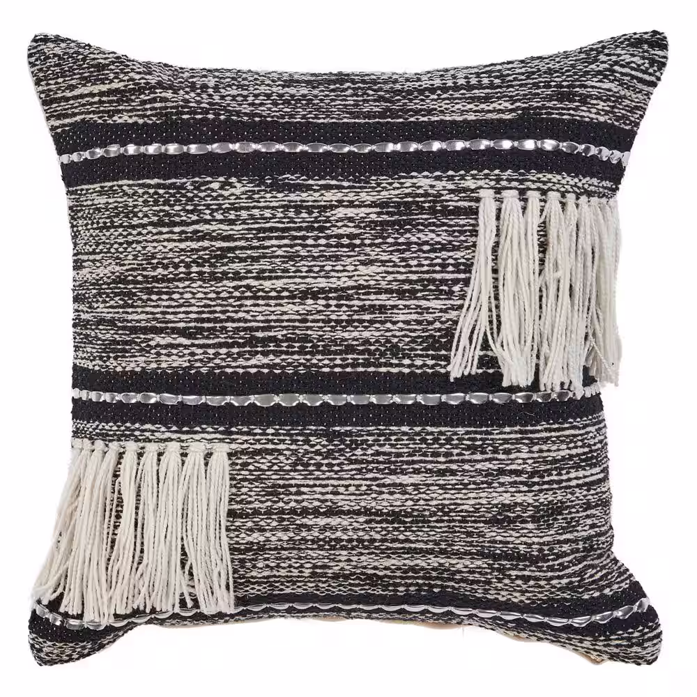 LR Home Eclectic Black Geometric Hypoallergenic Polyester 18 in. x 18 in. Throw Pillow