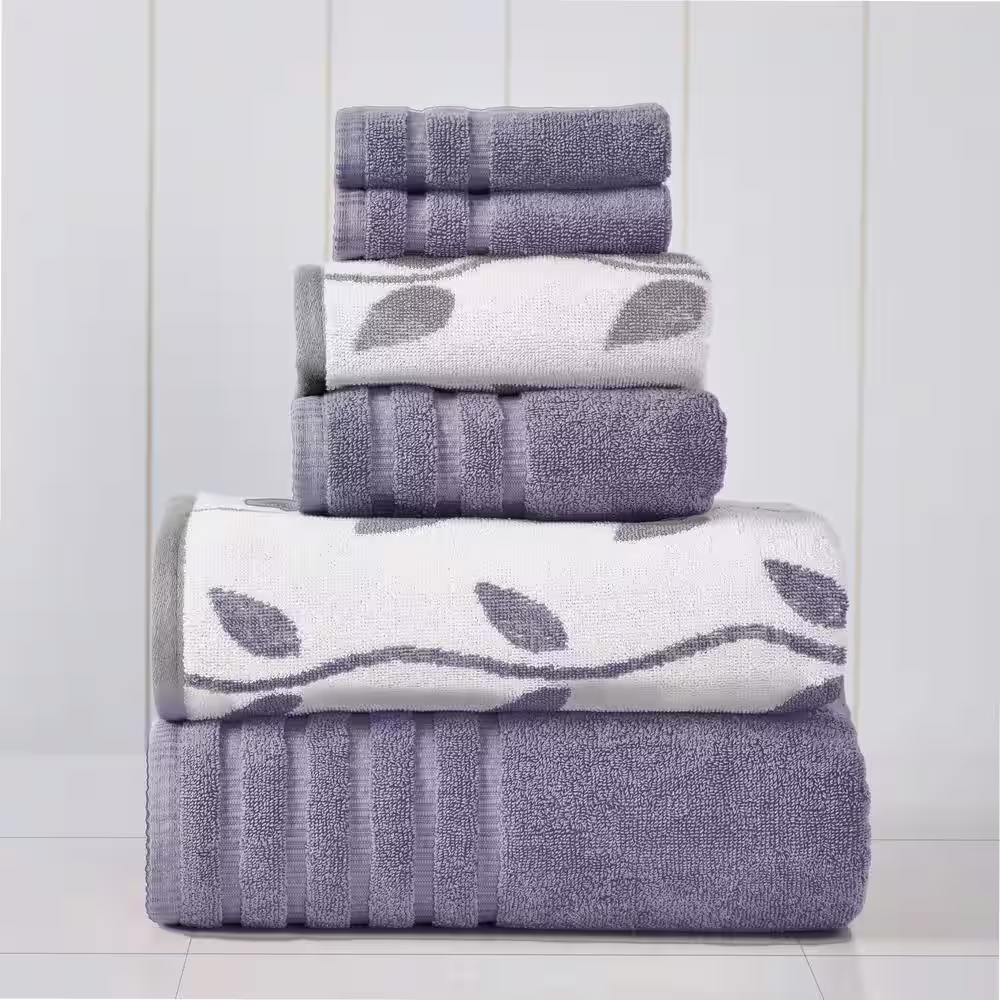 MODERN THREADS Grey Lavender 6-Piece Yarn Dyed Towel Set Organic Vines