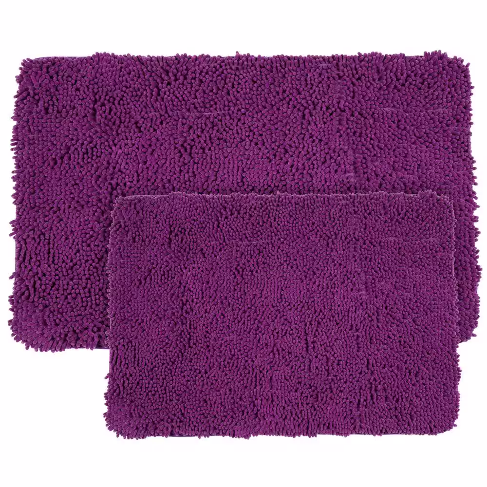 Lavish Home 2-Piece Memory Foam Shag Bath Mat Set in Purple
