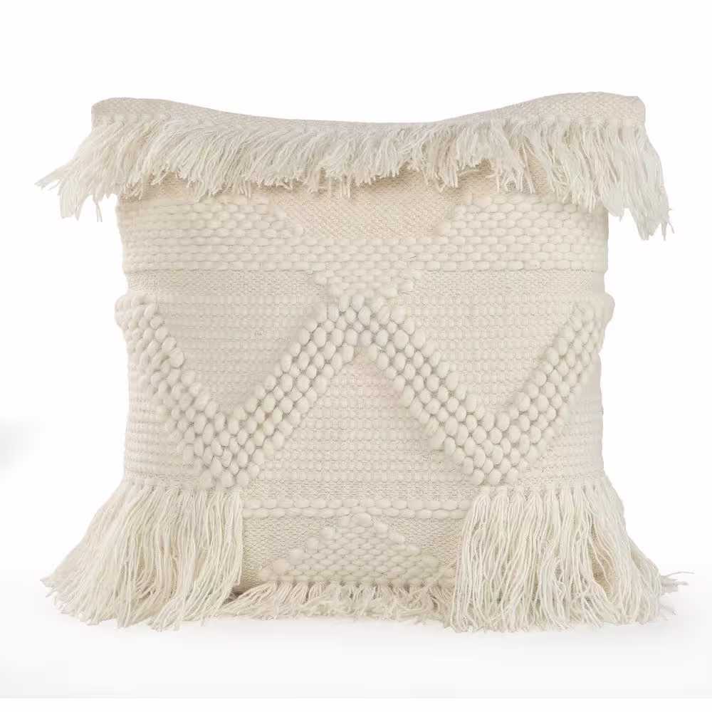 LR Home Eleanor White/Ivory Textured and Fringe Throw Pillow