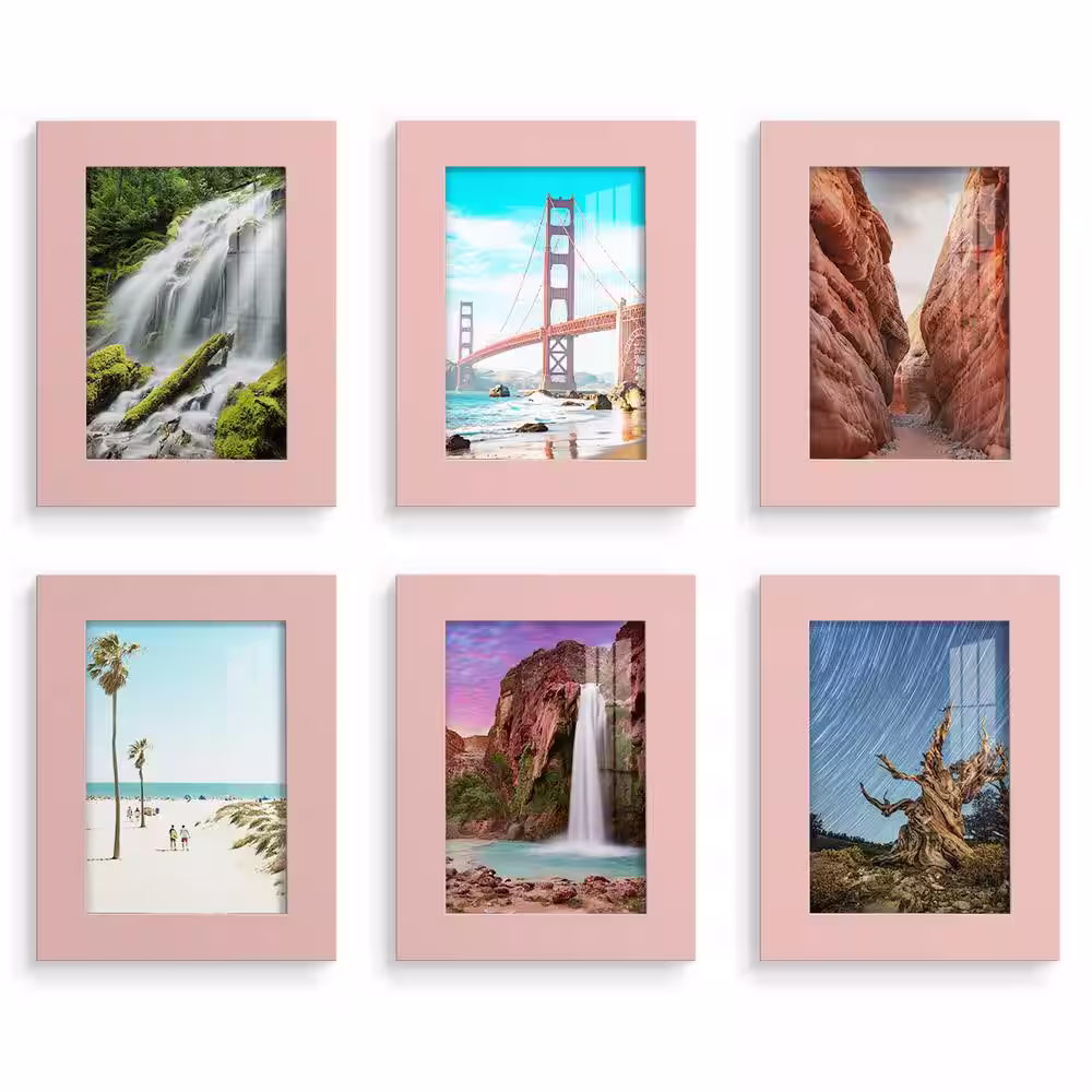 None Modern 3.5 in. x 5 in. Pink Picture Frame (Set of 6)