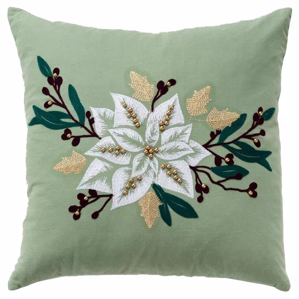 Rizzy Home Holiday Green/Multi-Color Poinsettia Cotton 20 in. x 20 in. Poly Filled Decorative Throw Pillow