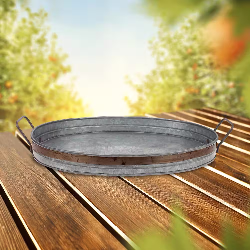Stonebriar Collection Aged Galvanized with Rust Metal Metal Trim Decorative Tray
