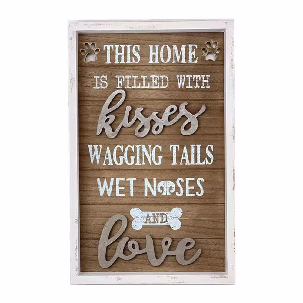 None This Home is Filled with Kisses Wagging Tails Wet Noses and Love Rustic Wood Framed Wall Decorative Sign