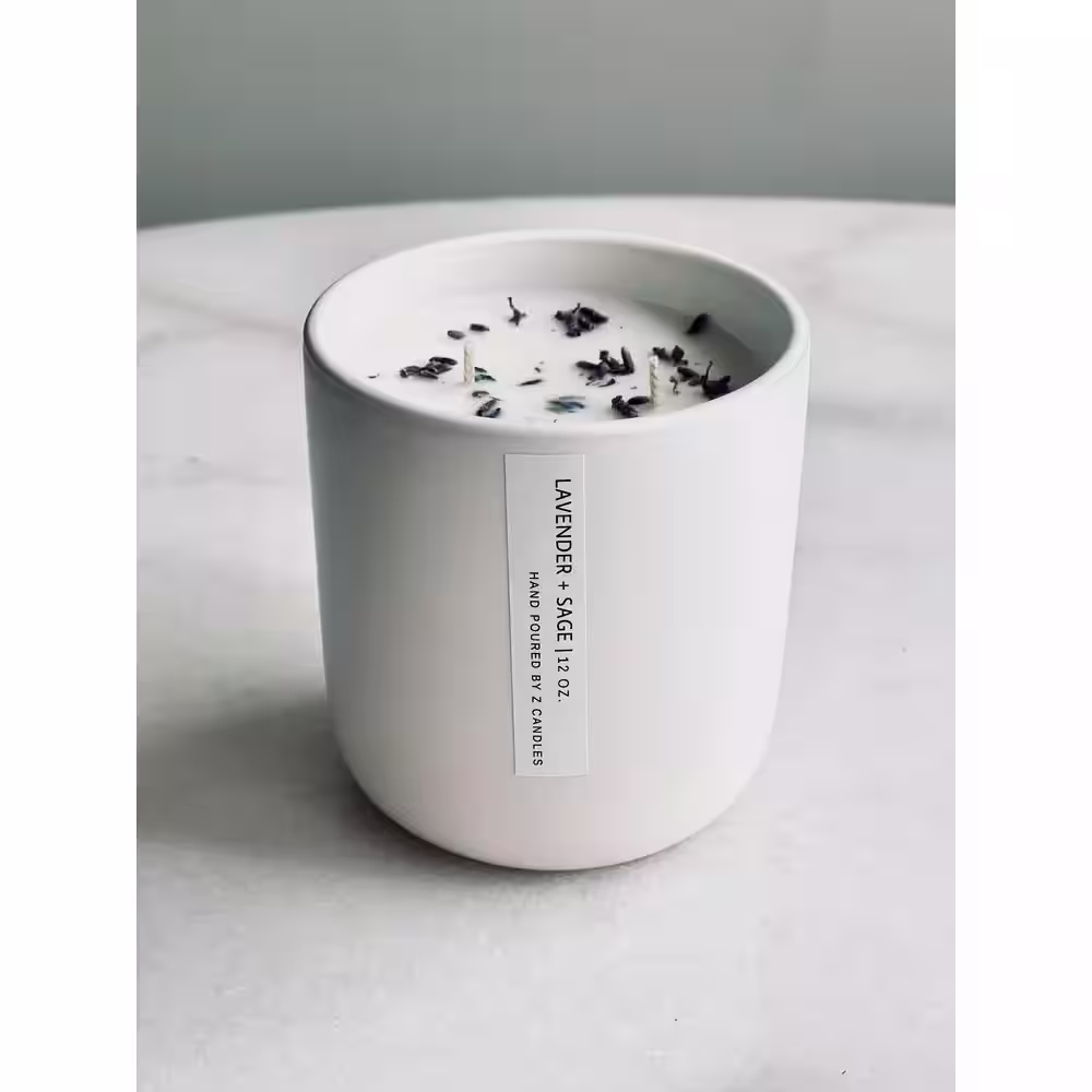 Z CANDLES Lavender plus Sage, Matte White Candle 12 oz.