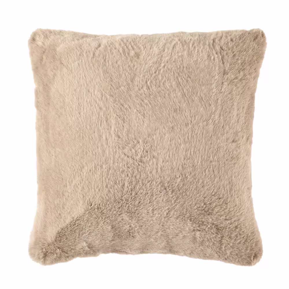 Home Decorators Collection Piper Taupe Faux Rabbit Fur 20 in. x 20 in. Square Throw Pillow