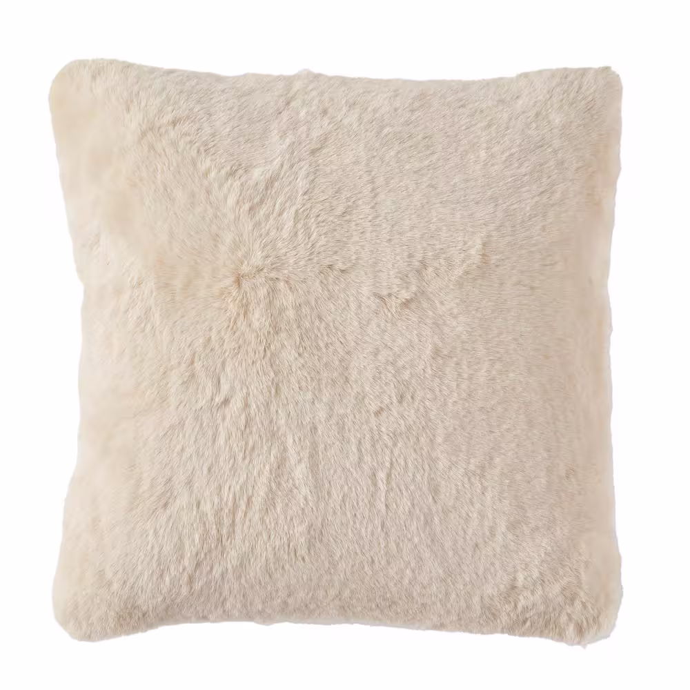 Home Decorators Collection Piper Cream Faux Rabbit Fur Square 20 in. x 20 in. Throw Pillow