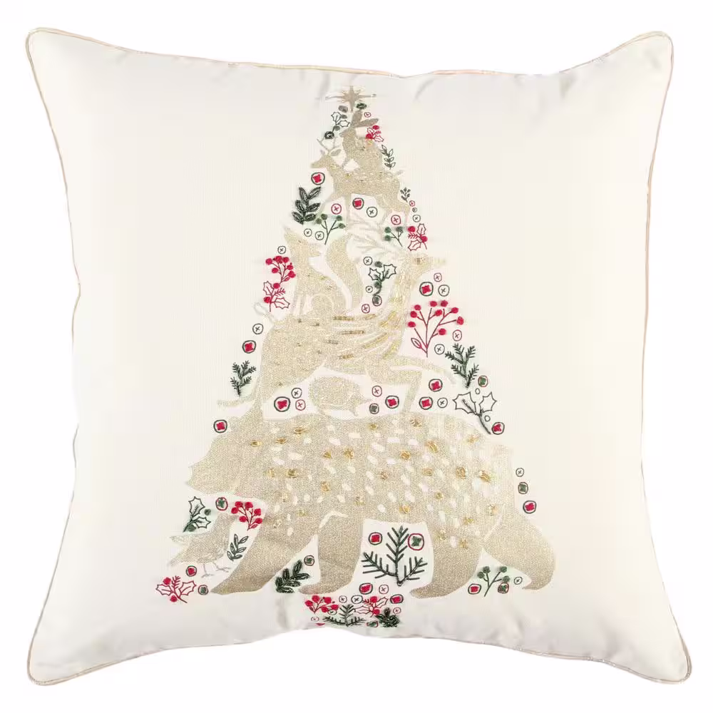 None Natural/Gold Christmas Decorated Tree Poly Filled 20 in. x 20 in. Decorative Throw Pillow