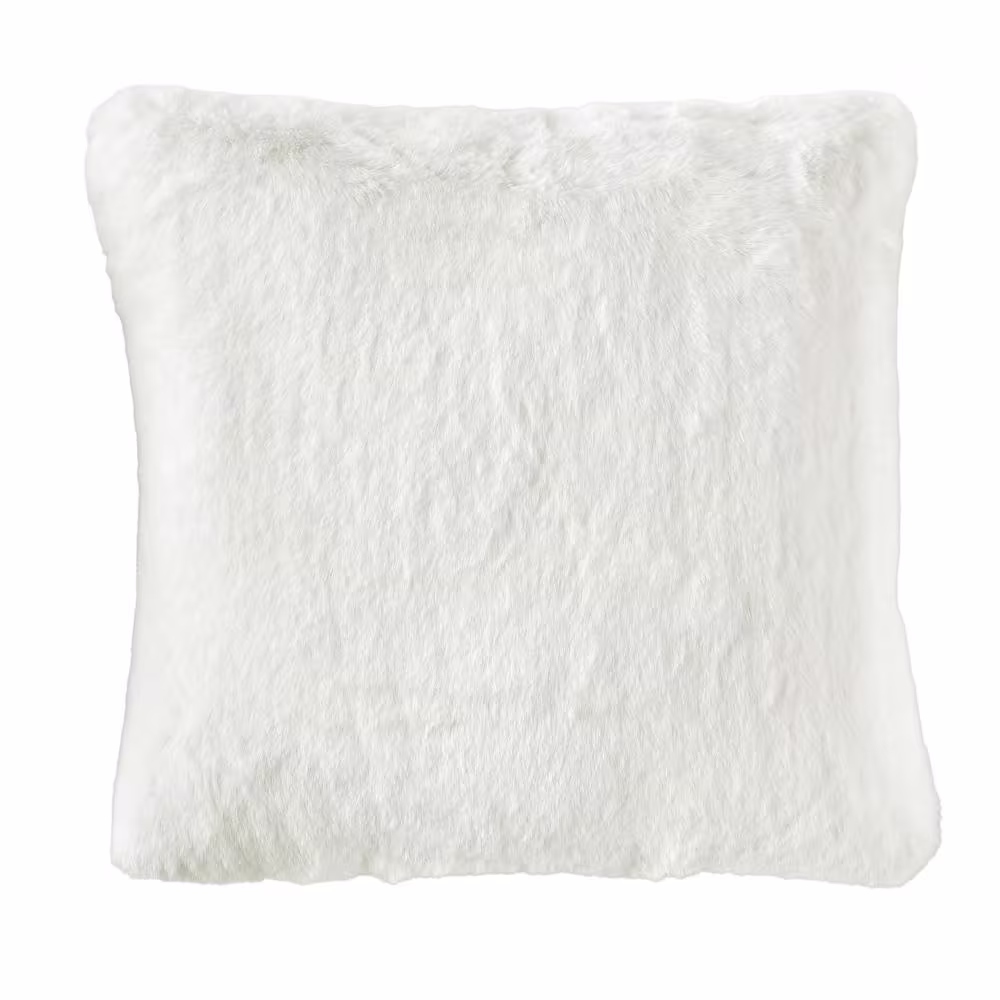 Home Decorators Collection Piper White Snow Faux Rabbit Fur 20 in. x 20 in. Square Throw Pillow