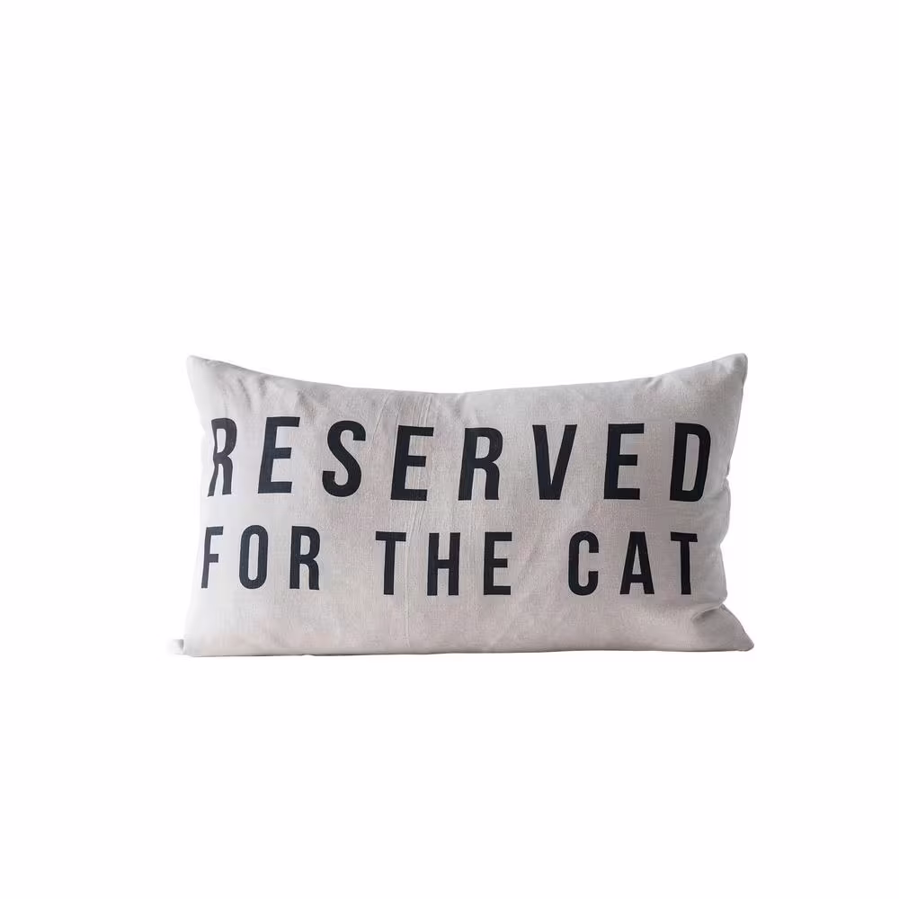 Storied Home White and Black in. Reserved for the Cat in. Cotton 24 in. x 14 in. Lumbar Throw Pillow