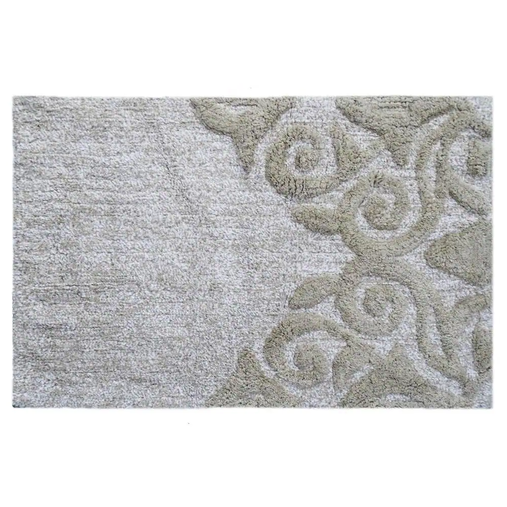 Vibhsa 20 in. x 32 in. Beige and Ivory Damask Pattern Bath Rug