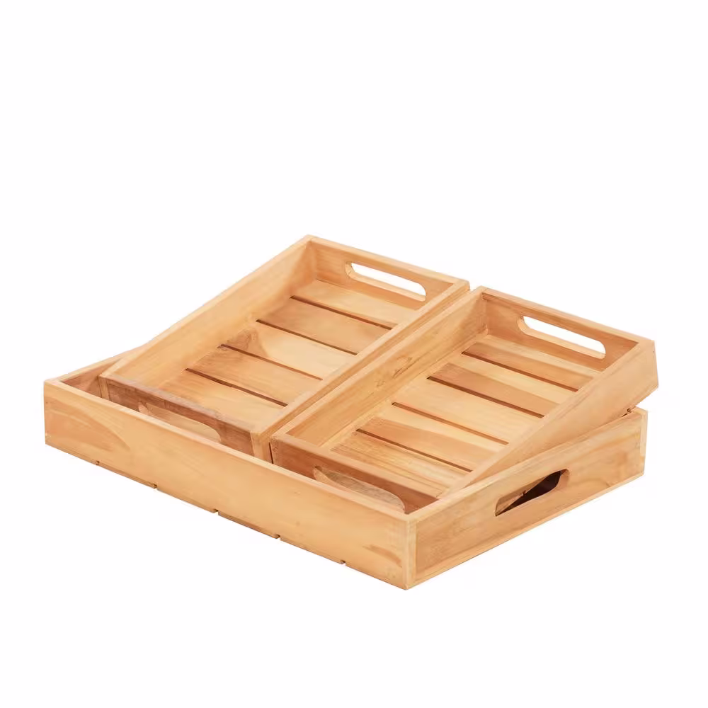 Litton Lane Brown Wood Coastal Trays (Set of 3)