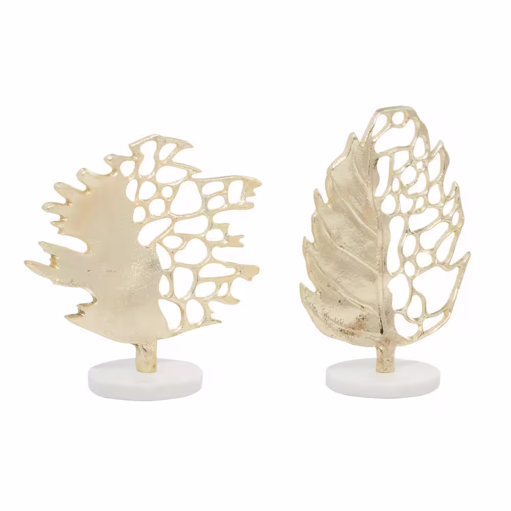 Litton Lane Gold Aluminum Leaf Sculpture (Set of 2)