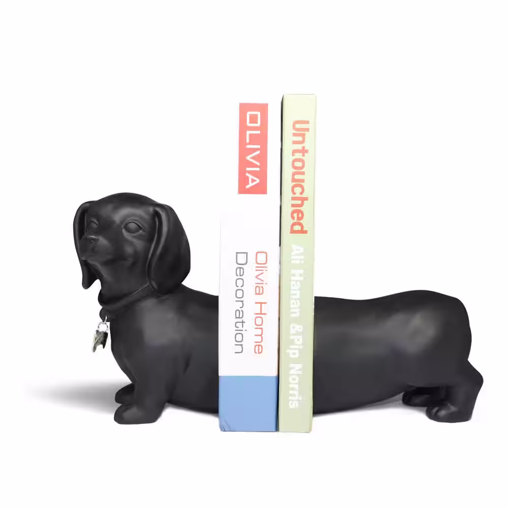 DANYA B Dachshund Dog Black Resin Bookends (Set of 2)