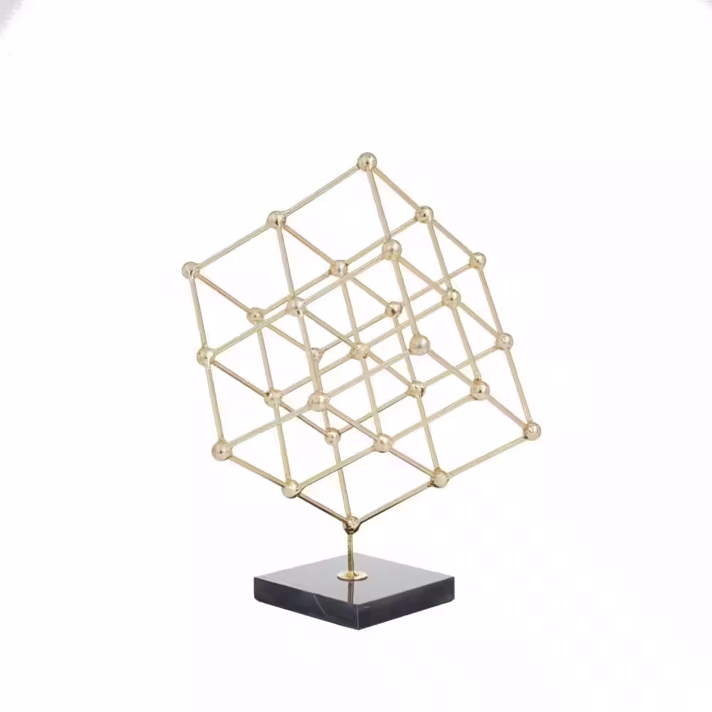 CosmoLiving by Cosmopolitan Gold Metal Geometric Sculpture with Paper Clip Accents (Set of 2)