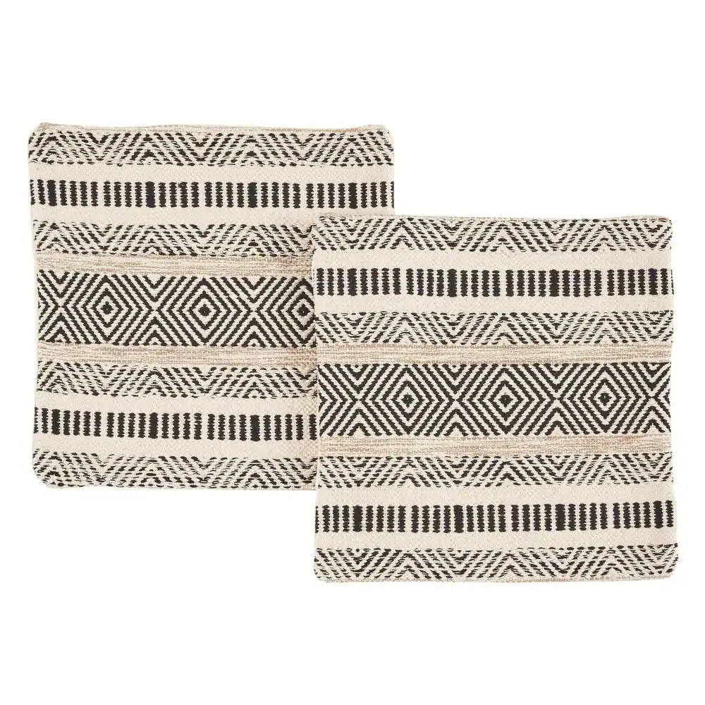 Noble House Artesian Black and White Geometric Zipper 18 in. x 18 in. Throw Pillow Cover (Set of 2)