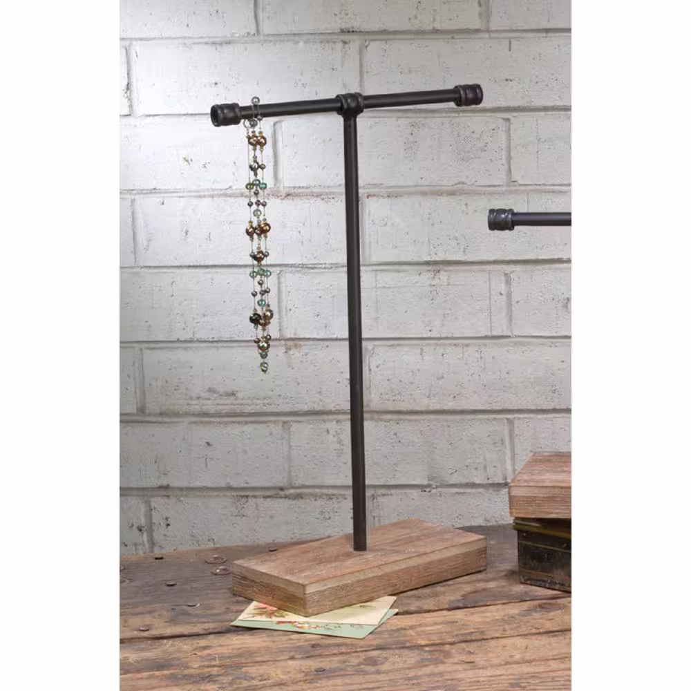 TRIPAR INTERNATIONAL, INC. 19.25 in. Industrial Black Metal T-Bar Jewelry Stand with Wood Base