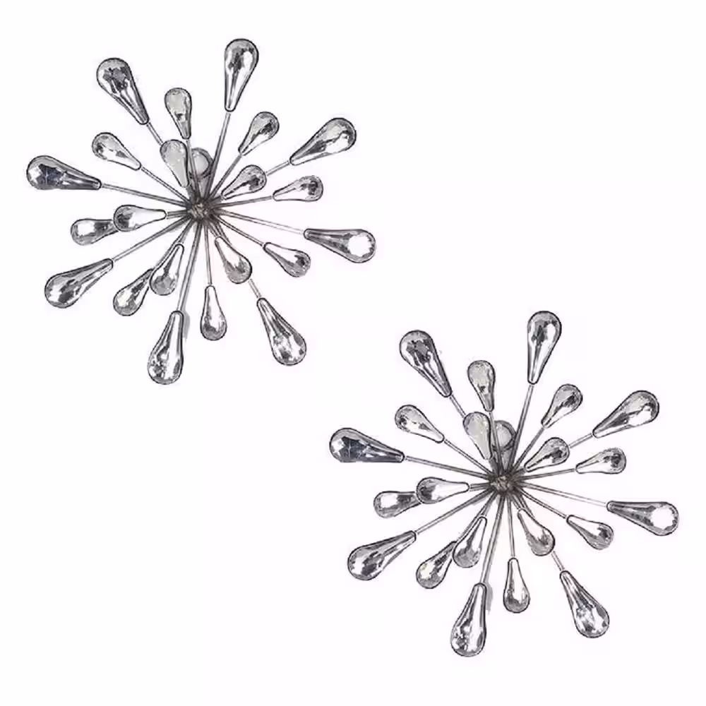 TRIPAR INTERNATIONAL, INC. 7 in. x 7 in. Metal and Acrylic Silver Starburst Wall Art (Set of 2)
