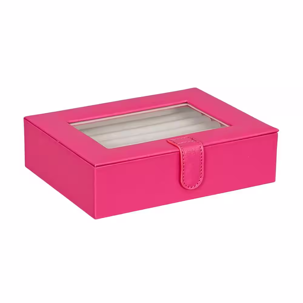 Mele & Co Cole Glass Top Fashion Jewelry Box and Ring Case in Textured Magenta Faux Leather