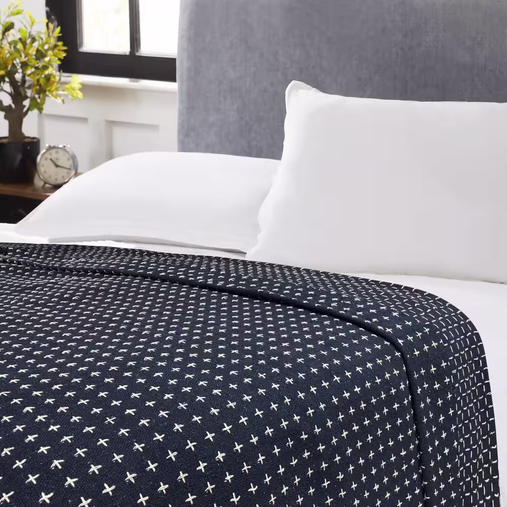 Harper Lane Melbourne Dot Navy Blue Full/Queen Cotton Blanket