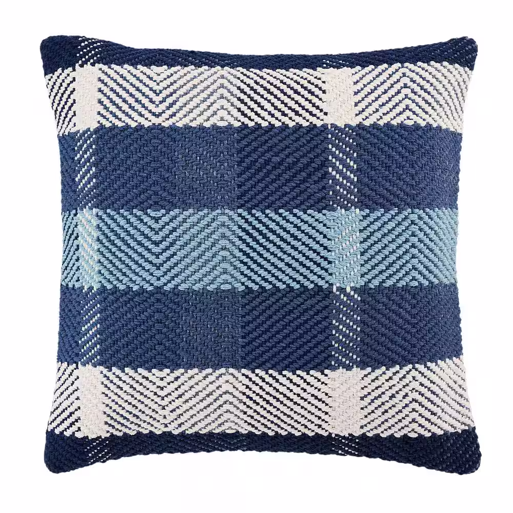 Home Decorators Collection Blue Plaid Textured 18 in. x 18 in. Square Decorative Throw Pillow