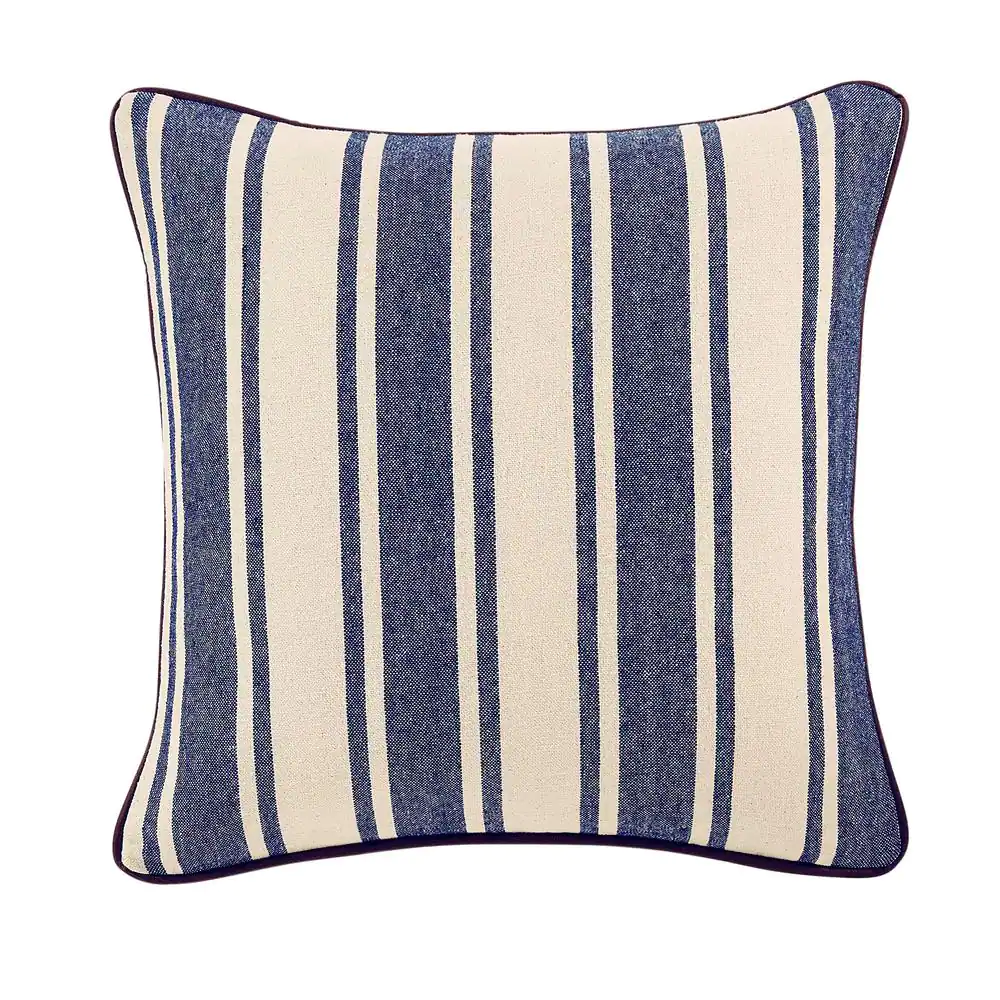 Home Decorators Collection Navy Stripe Piped-Edge 18 in. x 18 in. Square Decorative Throw Pillow