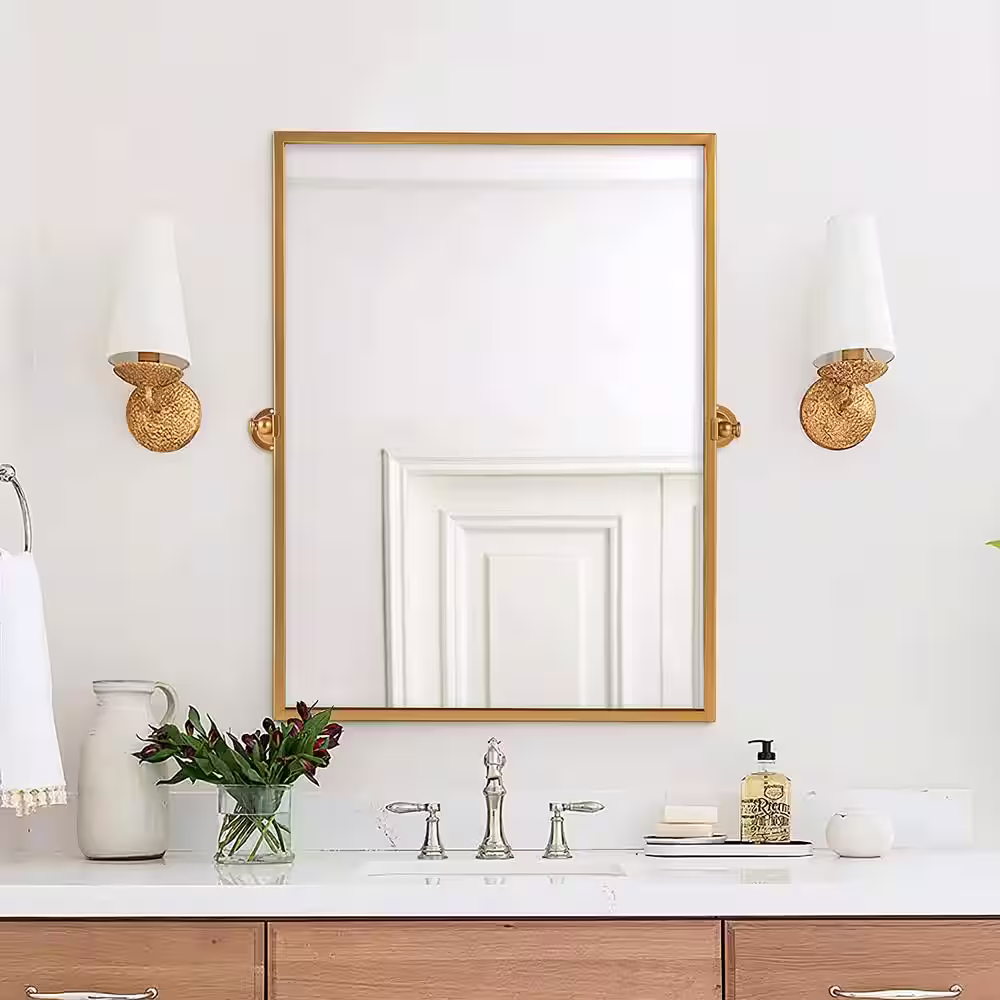 None 38 in. H x 26 in. W Modern Rectangle Metal Framed Pivoted Wall Vanity Mirror