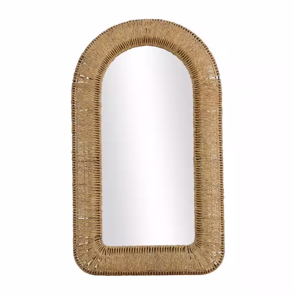 Litton Lane 48 in. x 27 in. Woven Rectangle Framed Brown Wall Mirror with Arched Top