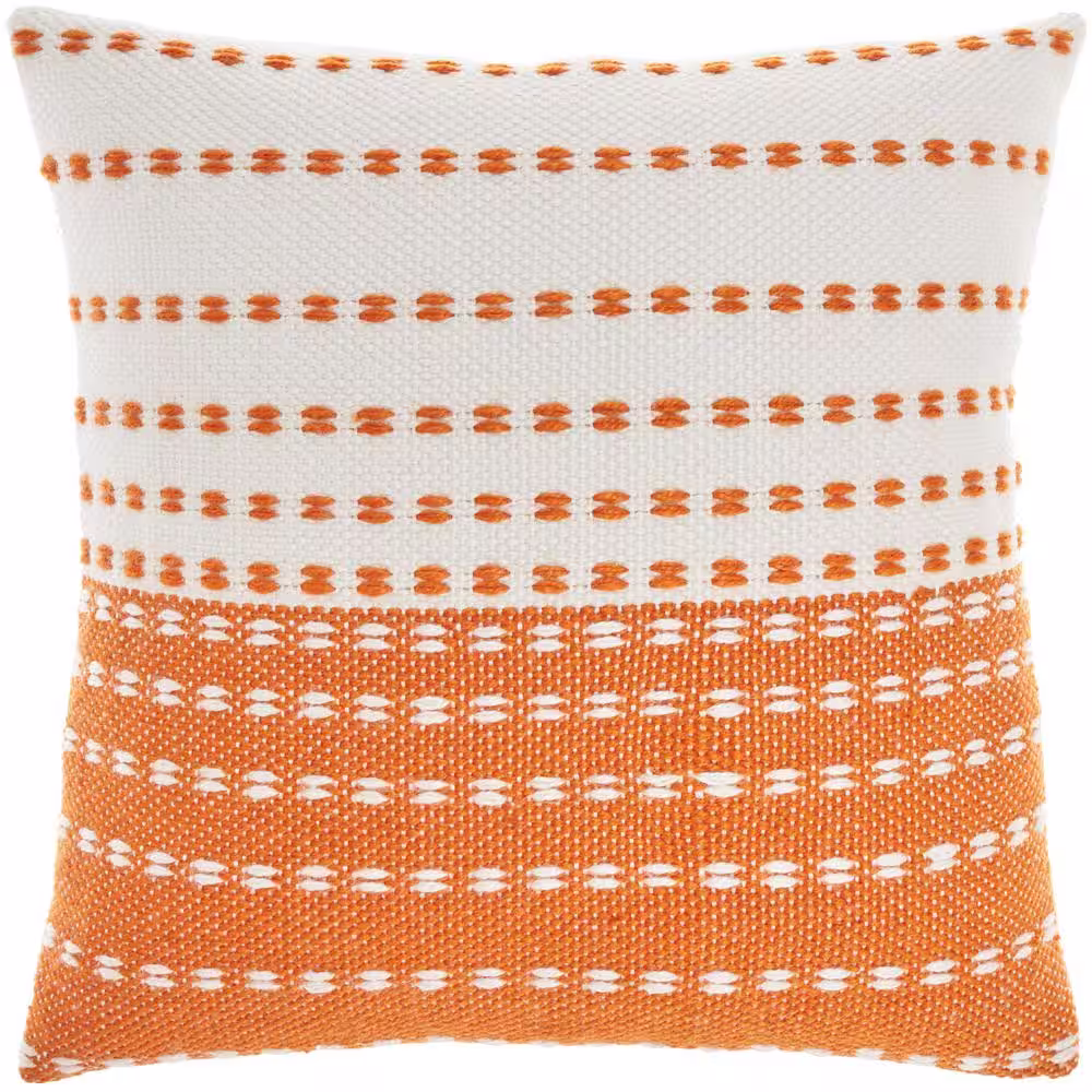 Mina Victory Orange Striped 18 in. x 18 in. Indoor/Outdoor Throw Pillow