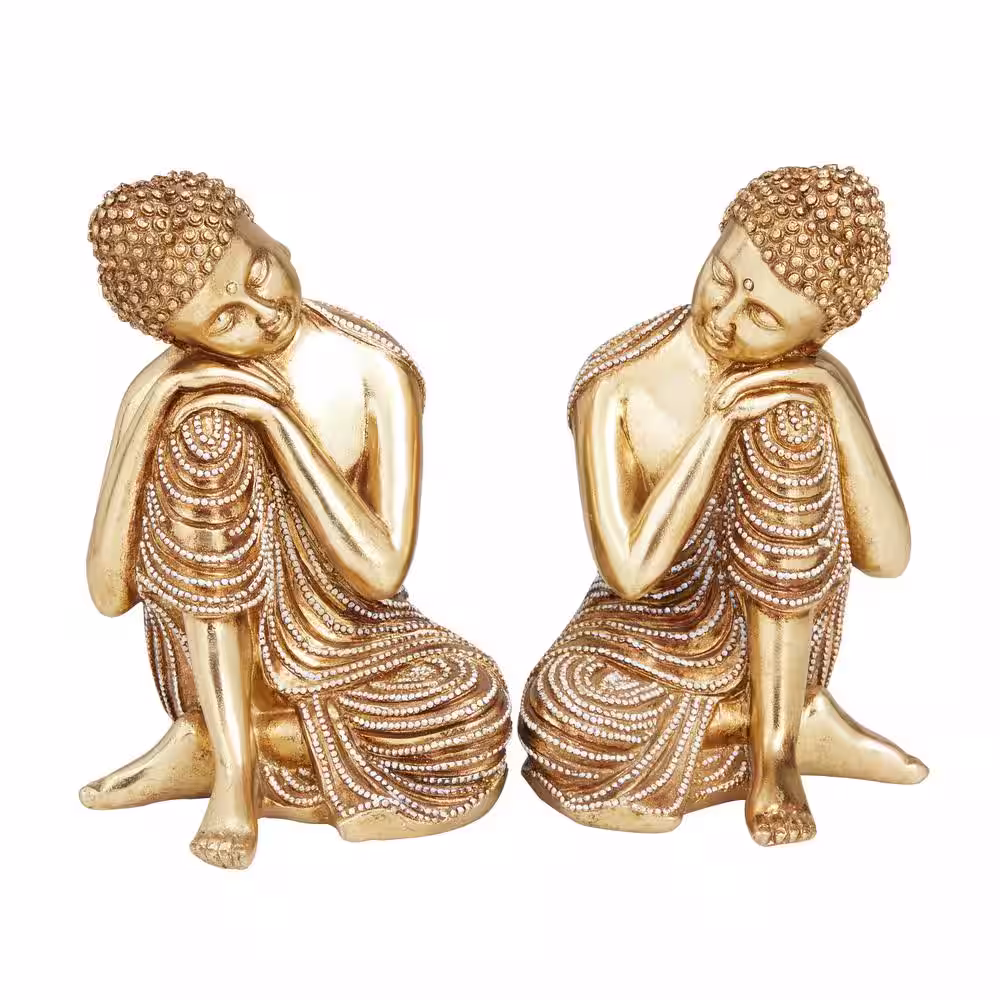 Litton Lane Gold Polystone Meditating Buddha Sculpture with Engraved Carvings and Relief Detailing (Set of 2)