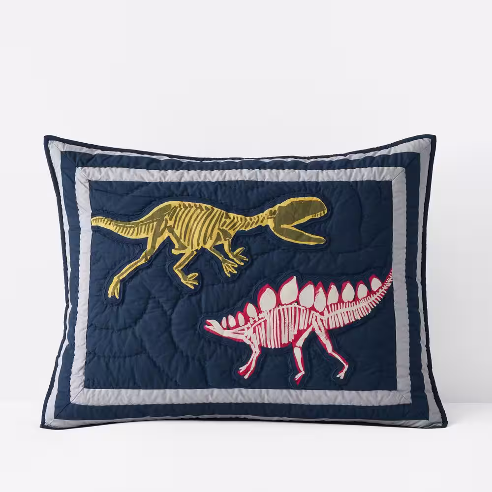Company Kids by The Company Store Company Kids Skeleton Dino Handcrafted Quilted Multicolored Cotton Blend Standard Sham