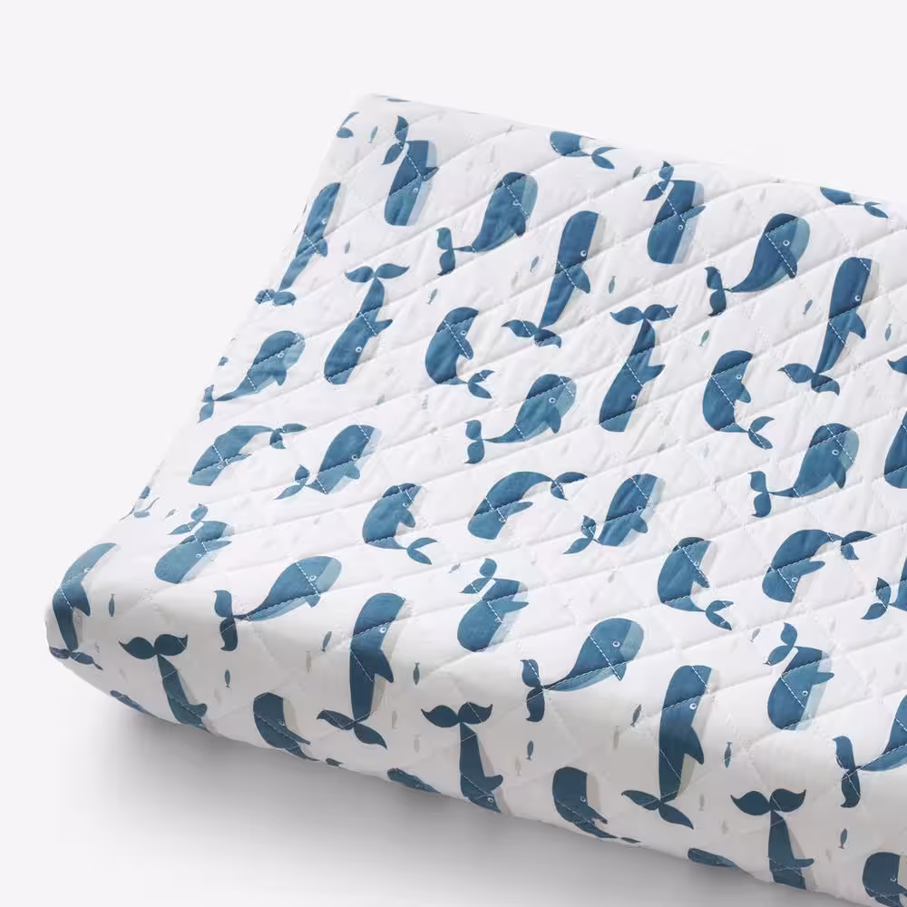 The Company Store Company Kids Whale School Quilted Blue Multi Organic Cotton Percale Bedroom Linen Changing Pad Cover