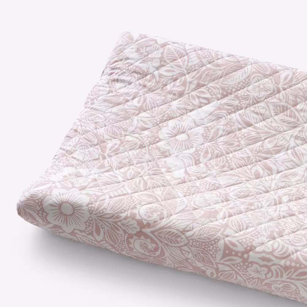 The Company Store Company Kids Flower Burst Quilted Pink Multi Organic Cotton Percale Bedroom Linen Changing Pad Cover