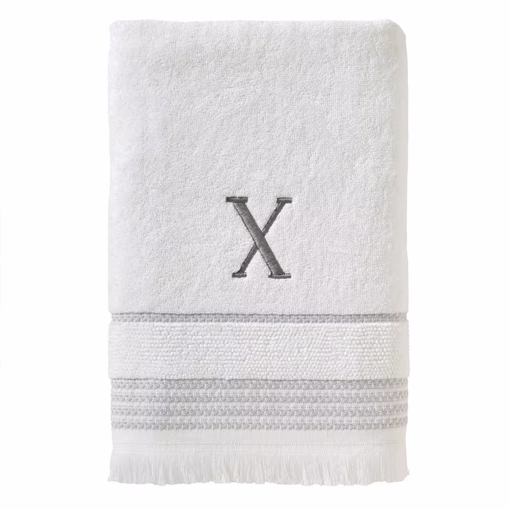 SKL Home Casual Monogram Letter X Bath Towel, white, cotton