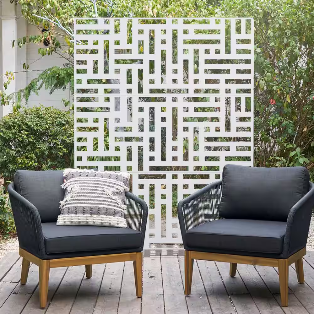 None 76 in. H x 47.2 in. W Metal Patio Privacy Screen Fence Privacy Screen Decorative Outdoor Divider (White)