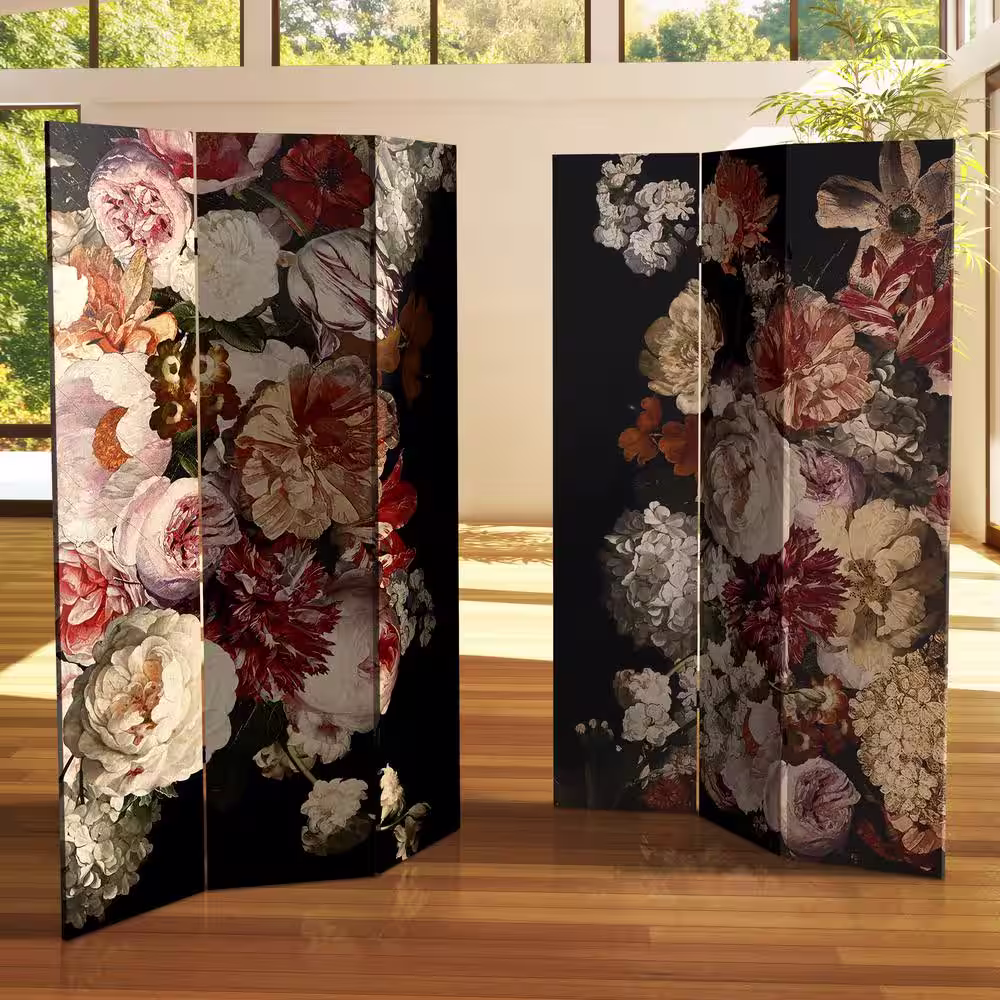 Oriental Furniture Vintage Flowers 6 ft. Printed 3-Panel Room Divider